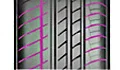 Les larges rainures, dotées d'un composé spécial, optimisent l'évacuation de l'eau pour faire face à toutes les conditions.