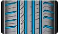 Profil asymétrique, large bloc d'épaulement, excellente tenue de route sur chaussée sèche, larges rainures favorisant un excellent drainage de l'eau.